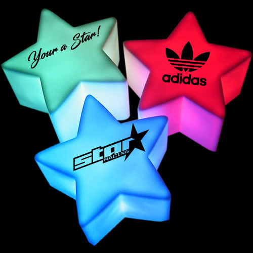 The Custom Printed LED Star Lamp has 9 different color and light modes including cool color changing modes! Watch as an array of rainbow colors shift and change while illuminating your surroundings. The 9 Mode LED Decor Stars make fun center pieces, great event lighting and also make fun take home gifts too! The Customized LED Star Lamp is a perfect alternative to a candle if you do not want or cannot have an open flame. Ideal for tabletop displays and as glowing event and party decorations.