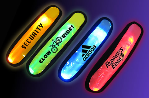 Custom Printed LED Safety and Sports Bands are bright LED Bands with three light settings. (Fast Flashing, Slower Flash and Steady Light modes) These bright Glowing Arm Bands have an adjustable elastic band that can be sized to fit most sizes. Wear these Glowing LED Safety Bands on your arms or legs and make yourself visible in all low light and dark environments.