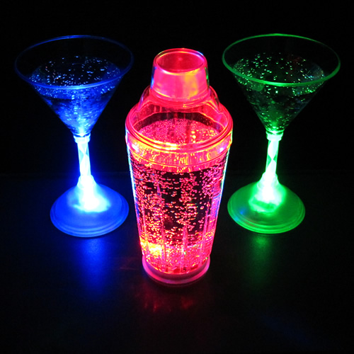 The LED Martini Shaker has Multi-Color Flashing LED Lights.