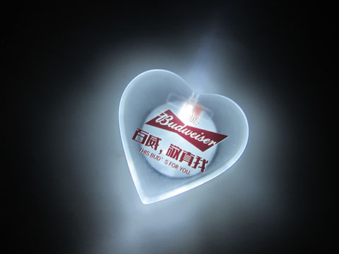 A light up heart shape LED Glowing Badge with a lapel pin backing. Custom printed LED badge lights are a great way to promote your company or special event! The LED heart shaped glowing badge has the glow color options of blue, green, red or white.