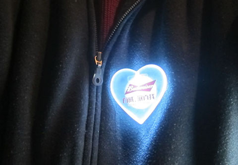 The heart shape LED glow badge is battery powered, has a steady glow effect and comes with an easy to attach pin on the back. A great handout for promotional corporate events, weddings, festivals or any type of glow party event.