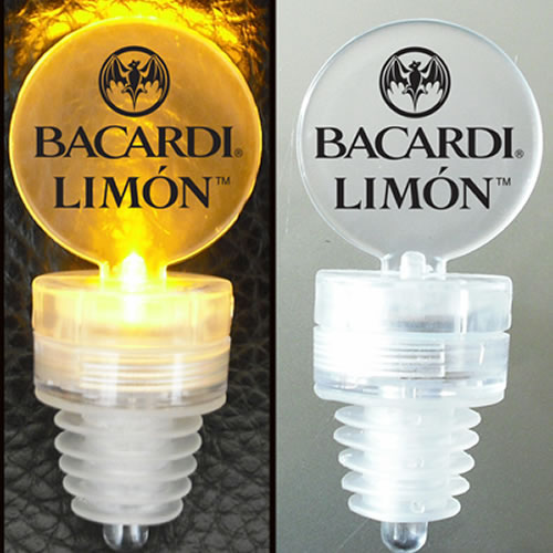 The customized Light Up Bottle Stoppers are an amazing, eye-catching way to let everybody know what the latest drink promotion is! The lighted bottle stopper creates a dazzling effect of light that makes your liquid filled bottles glow with colored light!