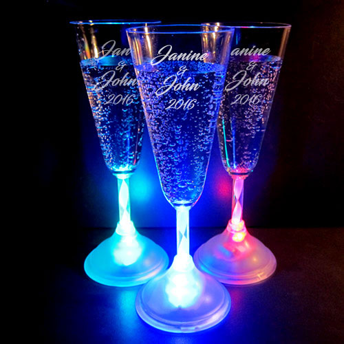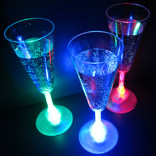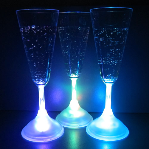 Keep the bubbly flowing with customized LED light up champagne flutes from Nitepromos.com! Anniversaries, New Years Parties or Special Occasions are what celebrating with Champagne is all about. Make it an extra special celebration that everyone remembers by custom printing your event or logo on these memorable promotional LED Champagne Flutes.