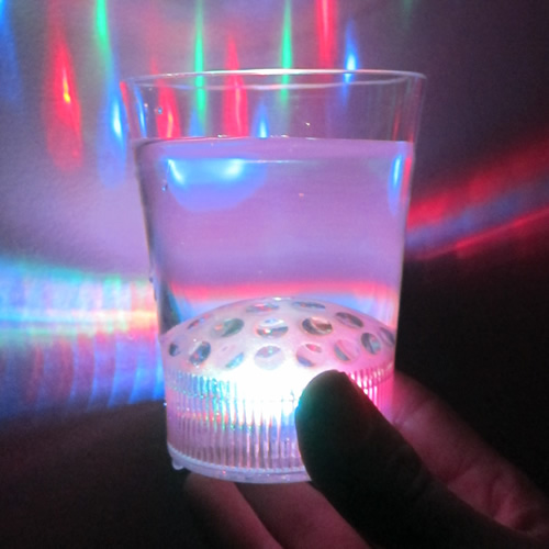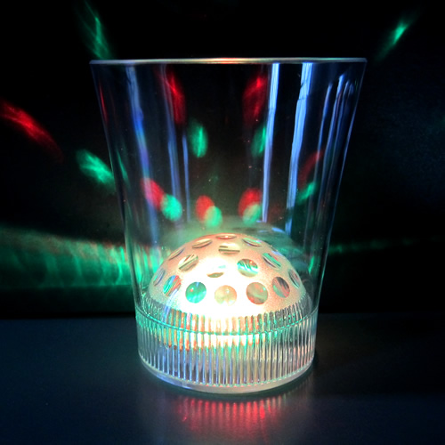The Custom Printed Light Show Drinking Glass is an LED glass that creates an amazing disco ball effect wherever you take it! The Customized LED Disco Glass is a versatile rock style glass perfect for any occasion. The lighted glass's dome shaped bottom creates a disco-ball like light projection effect with several colored LED lights inside. Each glass has 8 separate settings, just push the button at the bottom of the lighted disco ball glass and start the party!