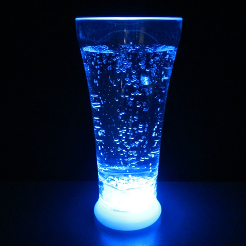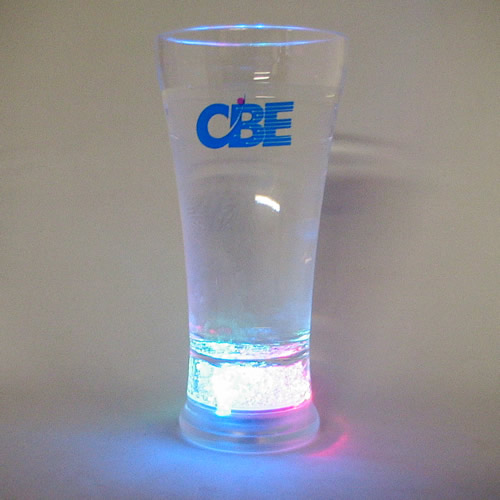 One of our most popular light up promotional products, the LED Light Up Fountain Glass (or Pilsner glass) is a great way to light up any event. The Custom Printed Light Up Fountain Glass has three bright LED lights in its base - one blue, one green and one red - which can bet set to 8 different color and light patterns, including a color changing "rainbow" mode.