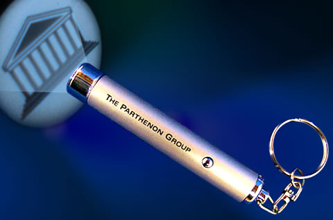Logo Light Projector Keychains can project your logo or message and can also be custom printed on the side of the LED keychain.